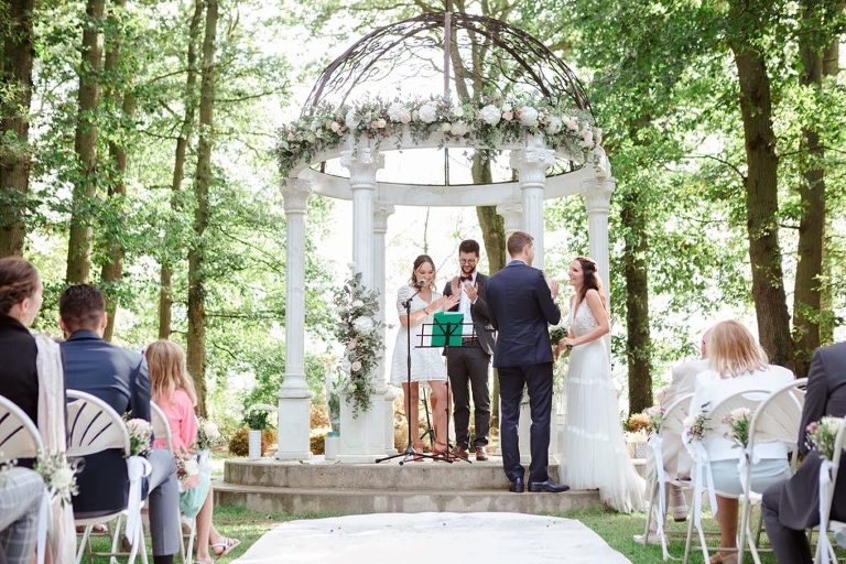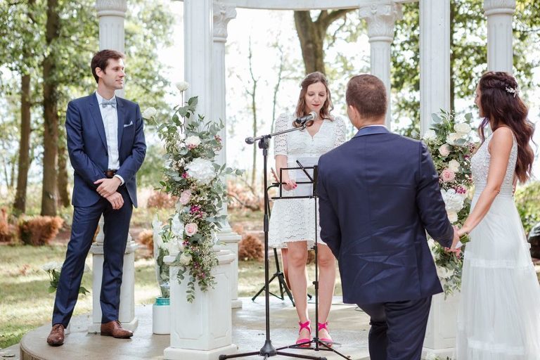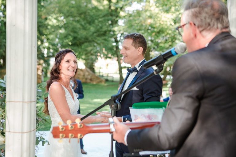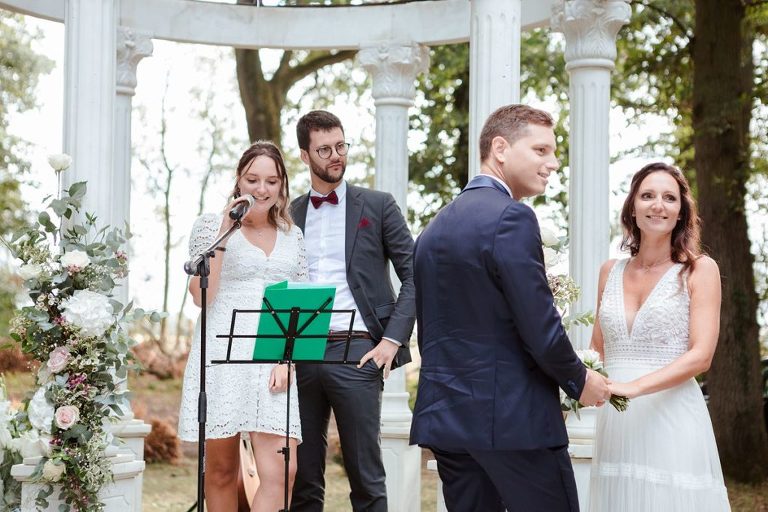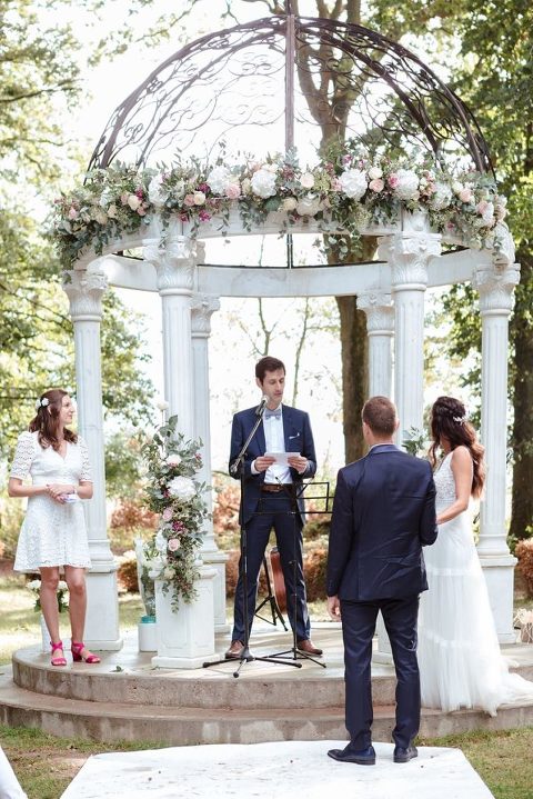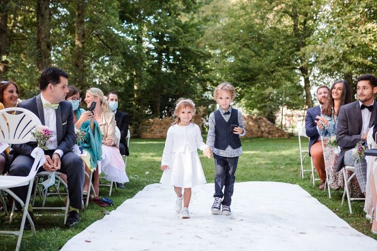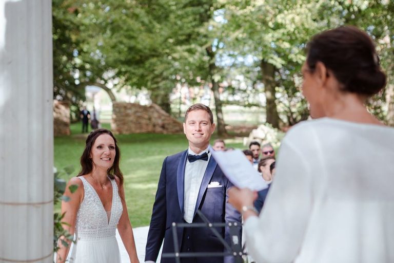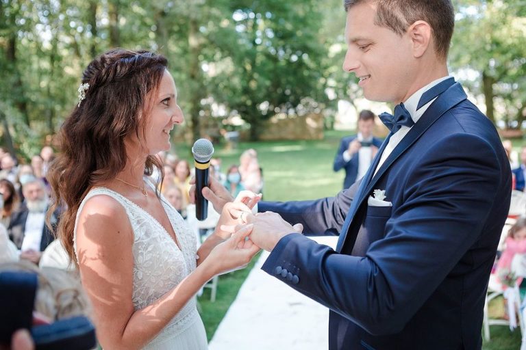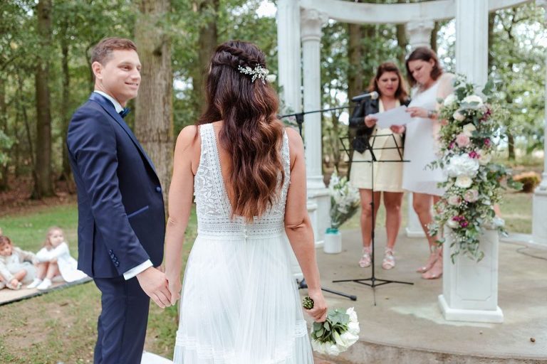 Le moment fort de cette journée ? Une cérémonie laïque en plein air, organisée dans la magnifique clairière du domaine. Un décor enchanteur, baigné de lumière naturelle et entouré d’arbres majestueux, qui a ajouté une touche de magie à l’événement. Entre discours émouvants, regards remplis d’amour et quelques larmes de bonheur, l’émotion était à son comble. Un instant suspendu que tous les invités garderont précieusement en mémoire.